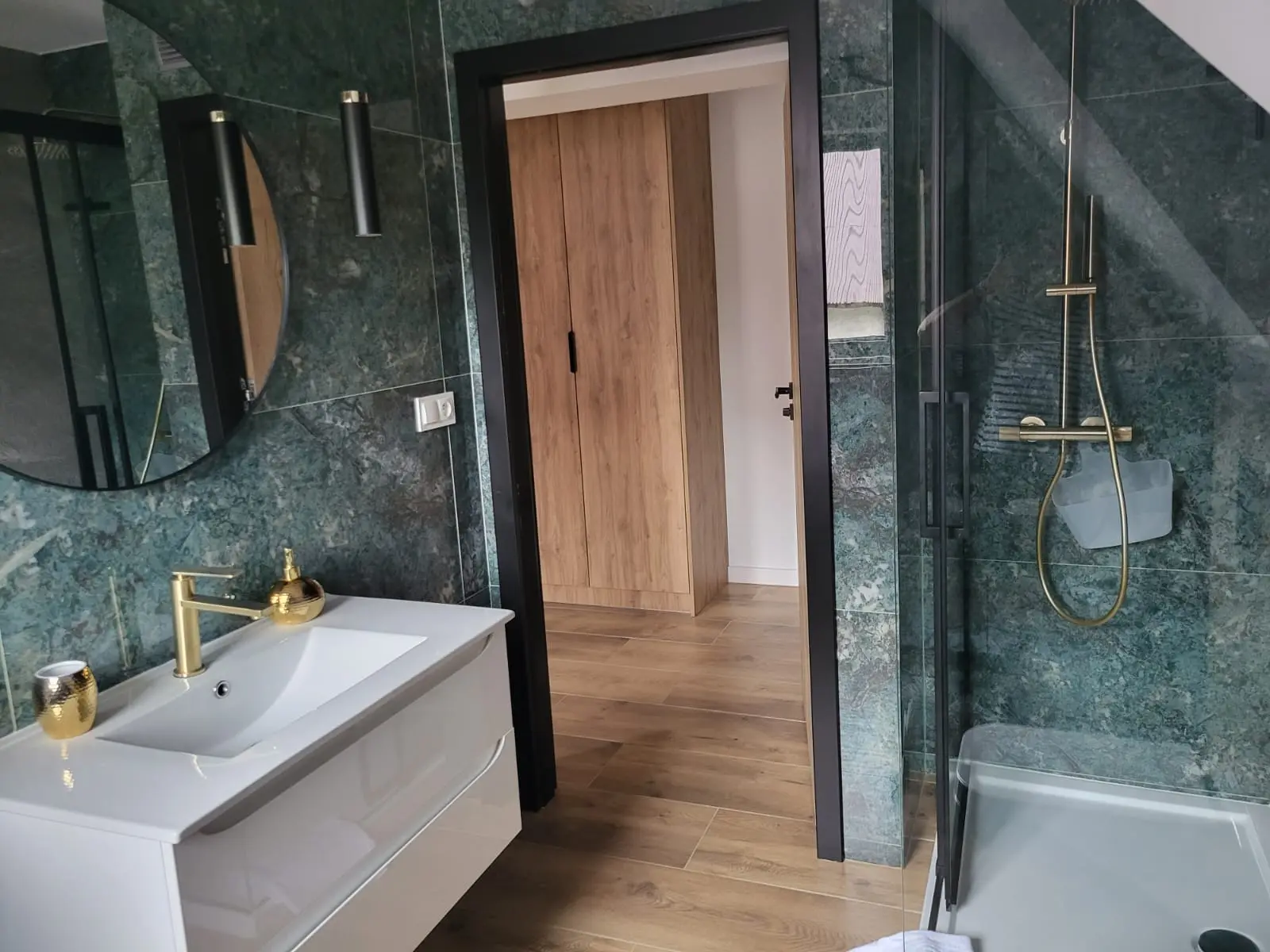 Apartament został oddany do użytku w 2025 roku, dzięki czemu oferuje nowoczesne, świeże wnętrze zaprojektowane z myślą o wygodzie. Dwupoziomowy układ obejmuje salon z aneksem kuchennym i sofą na dolnym poziomie oraz dwa oddzielne pokoje na górze – jeden z łóżkiem małżeńskim oraz drugi z dwoma łóżkami pojedynczymi. Balkon zapewnia dodatkową przestrzeń do odpoczynku.